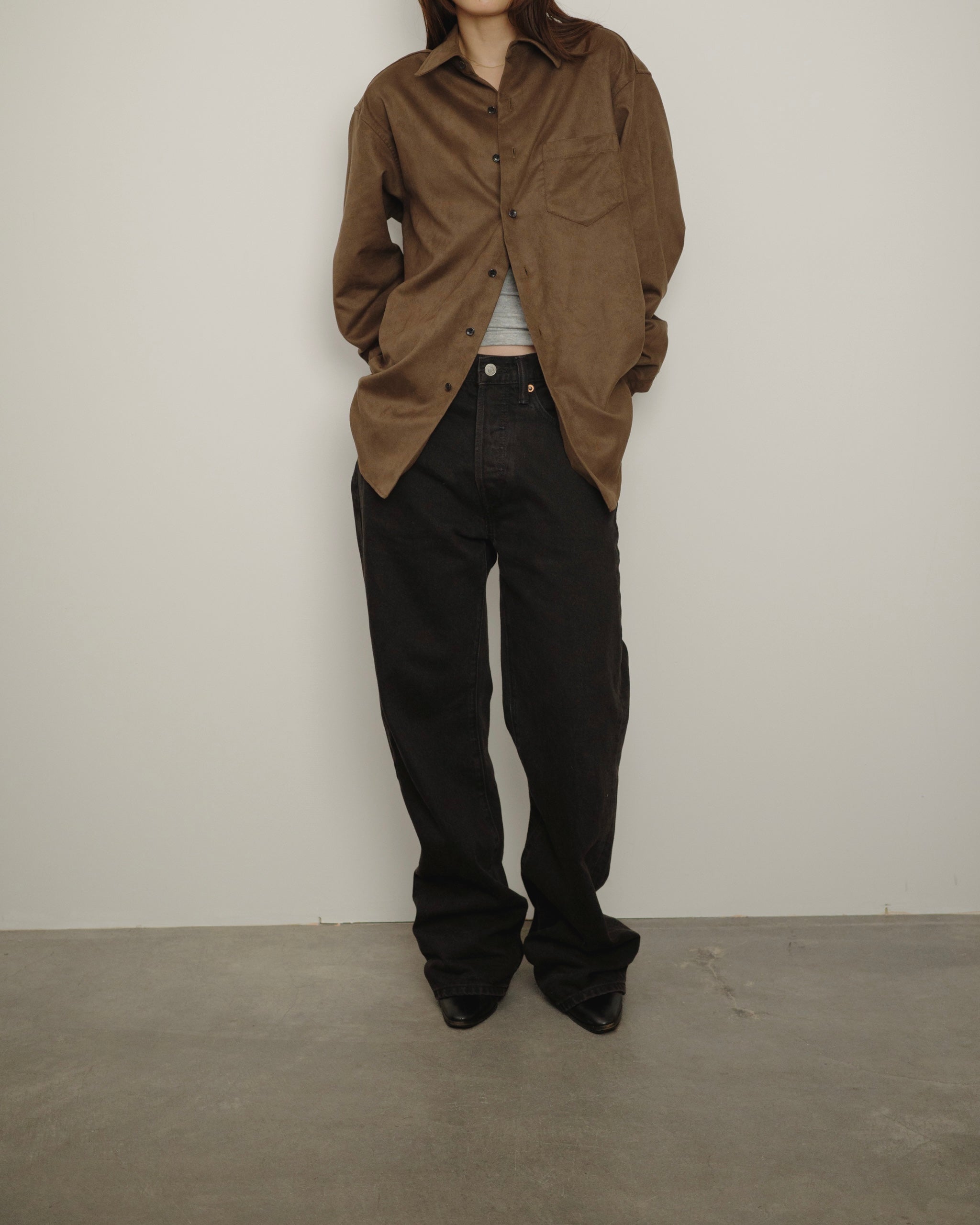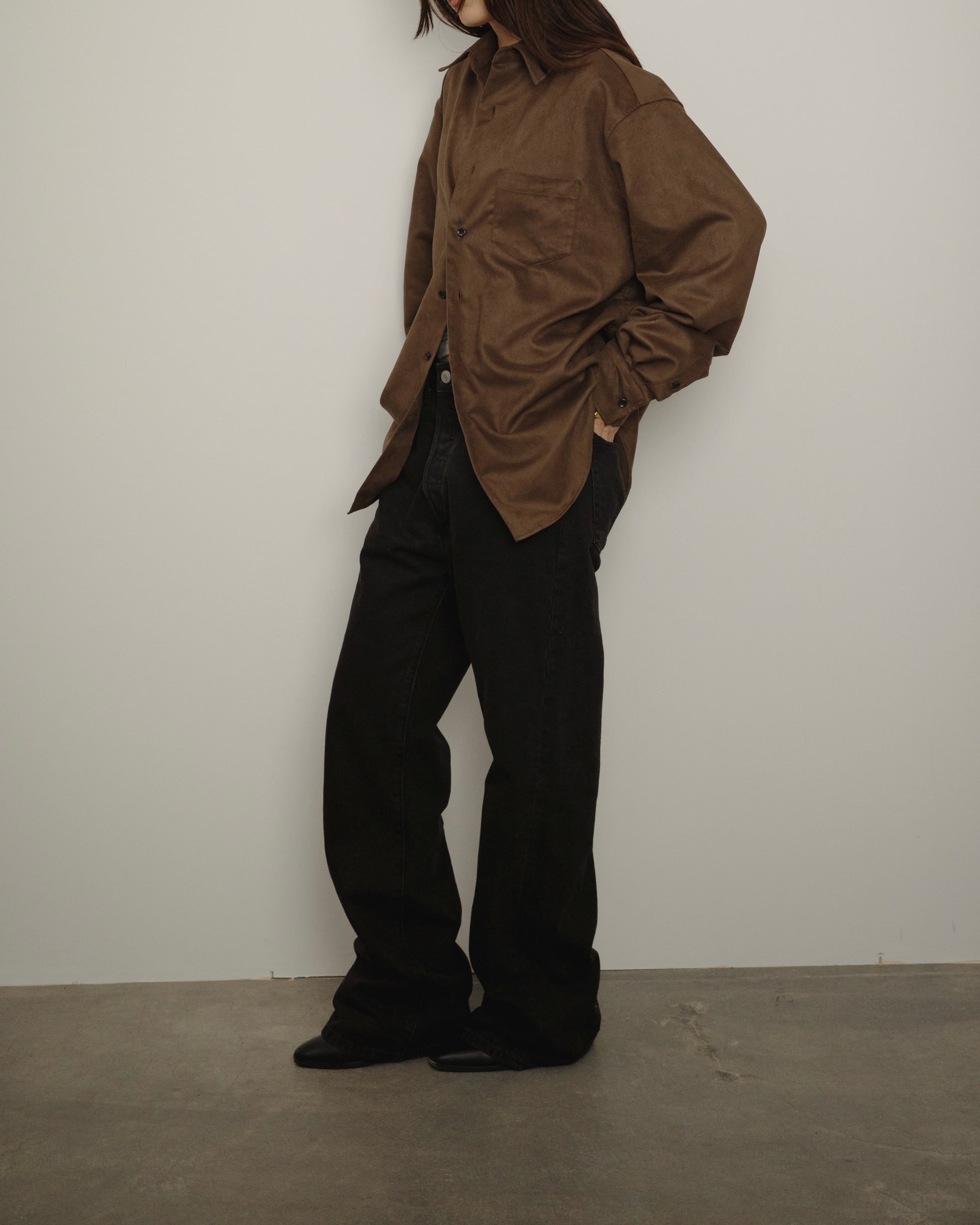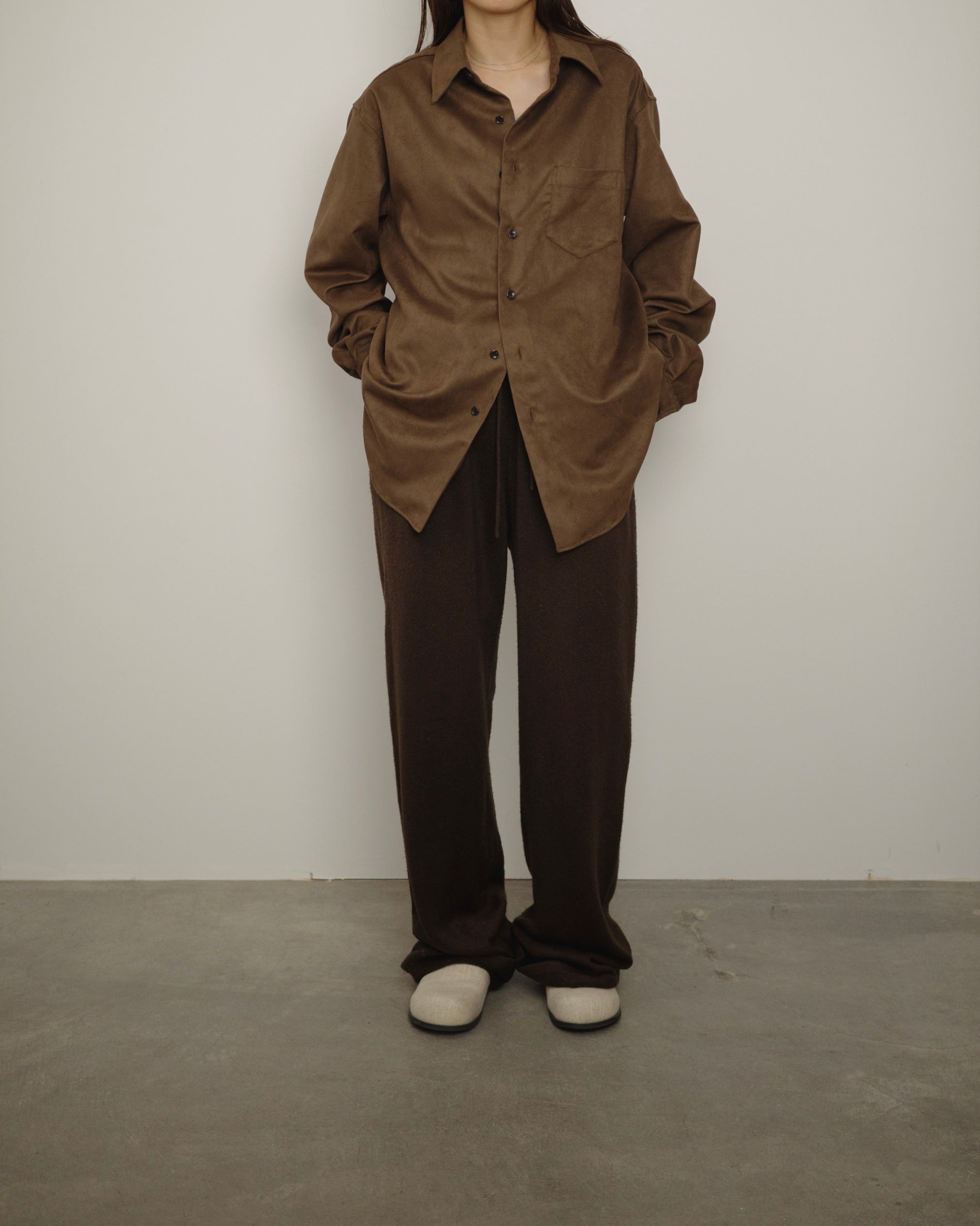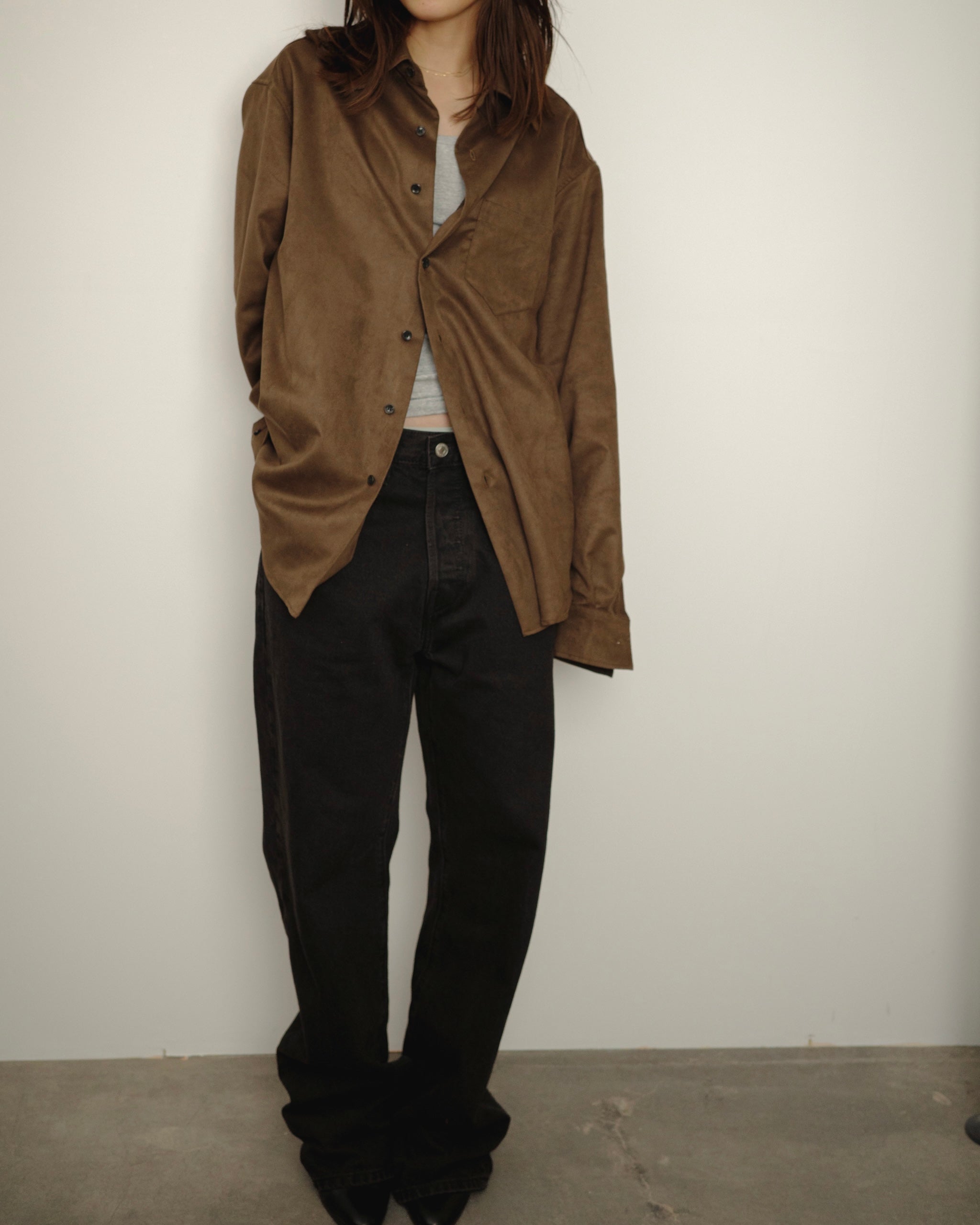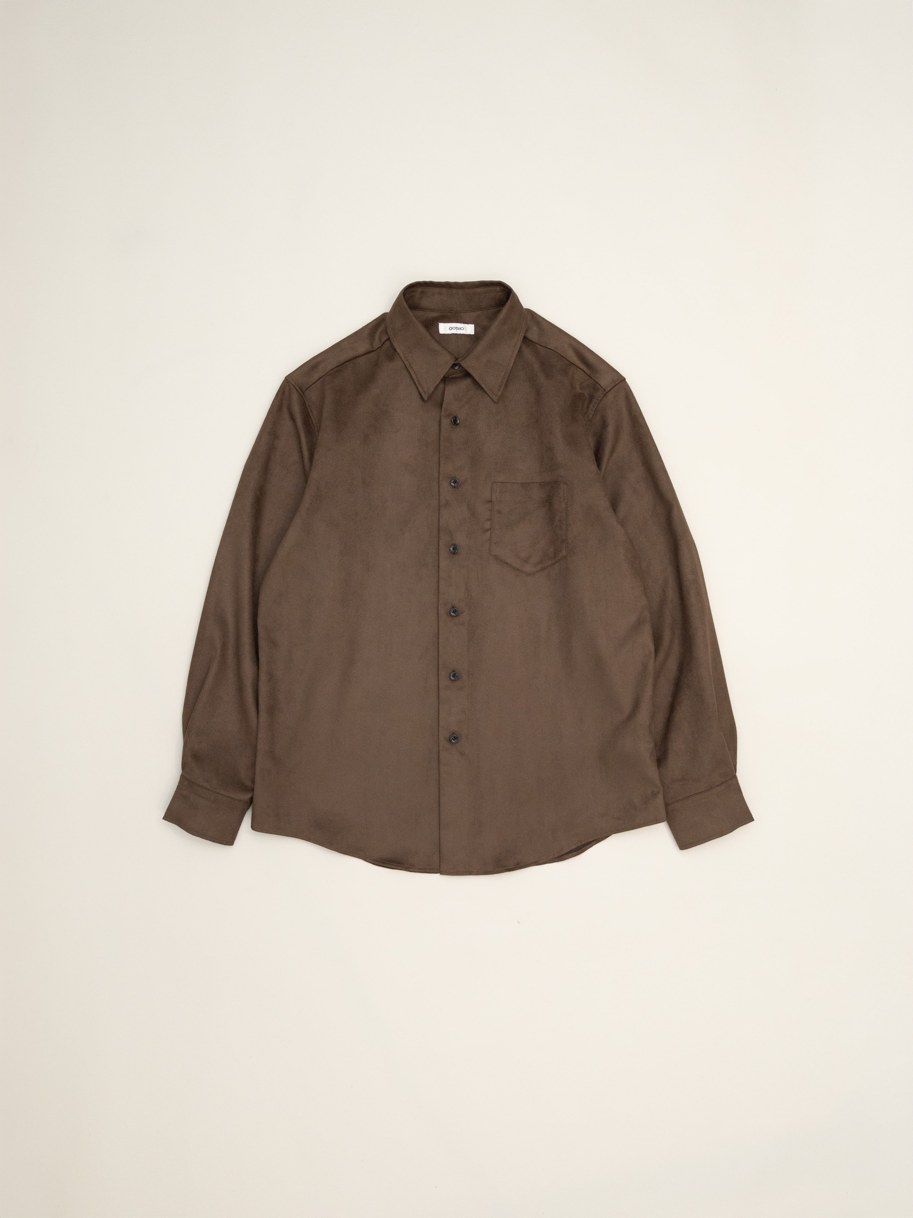 しっとりとした質感のフェイクスエード素材を使用したシャツ。